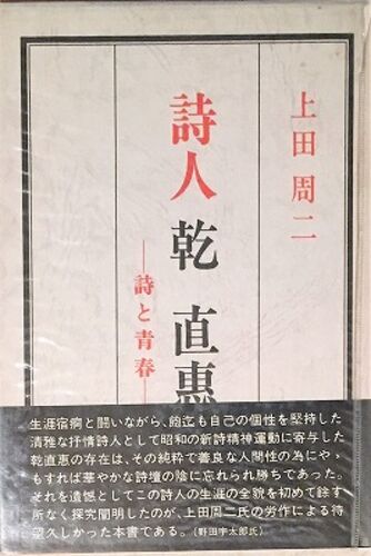 1982年5月、潮流社から刊行された上田周二による乾直惠(1901~1958)の評伝。 目次 はじめに第一部 詩人の誕生、その美学の軌跡 第一章 詩と青春 第二章 『肋骨と蝶』の世界 第三章 『花卉』論 第四章 俳句と散文 第五章 『花卉』以後の詩集 第二部 乾直惠…