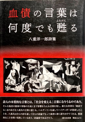 2022-10-15 血債の言葉は何度でも甦る 八重洋一郎詩集 八重洋一郎 2020年10月、コールサック社から刊行された八重洋一郎(1942~)の詩集。装幀は山口友里恵。装画はピカソ(群馬県立近代美術館蔵)。著者は石垣市生まれ。 目次 おお マイ・ブルースカイ 上映会――六十年前の現実から 杭 やさしい分数計算 血債の言葉は何度でも甦る 万世万系 後半参(ヤハンメ)ー 果てない祭り ゲルニカ 白梅 きてみれば 受付 首里城炎上 新・黒死病への催眠 長安羨望 ガラス箱の中の幽霊 おとぎ話 与那国(どぅなん) カナリヤ 解說 鈴木比佐 あとがき略歴 NDLで検索Amazonで検索日本の古本屋で検索ヤフオクで検索